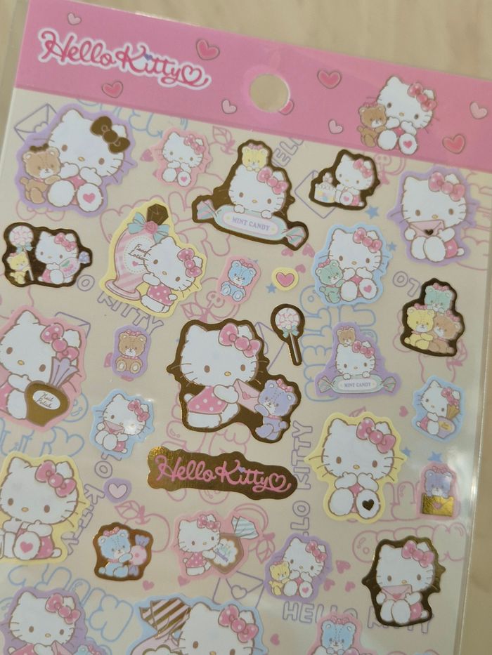 Stickers Sanrio Hello Kitty. En parfait état. 🌸Les prix sont fixes, car ils intègrent les taxes auxquels les pros sont asujettis. Aucune offre ne sera acceptée qu'il s'agisse d'un lot ou d'un article à l'unité, merci. 🌸N'hésitez pas à vérifier la disponibilité de l'article avant de procéder à l'achat.