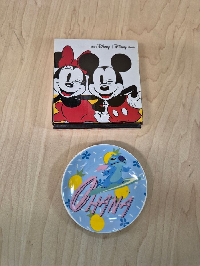 Mini assiette Disney Store Japon : Stitch "Ohana". Porcelaine, environ 10 cm de diamètre. En excellent état avec sa boîte d'origine en état correct. Vendeur habitué aux envois fragiles. 🌸Les prix sont fixes, car ils intègrent les taxes auxquels les pros sont asujettis. Aucune offre ne sera acceptée qu'il s'agisse d'un lot ou d'un article à l'unité, merci. 🌸N'hésitez pas à vérifier la disponibilité de l'article avant de procéder à l'achat.