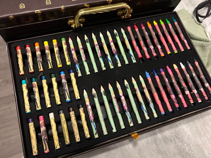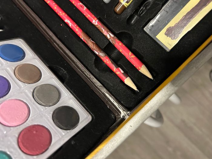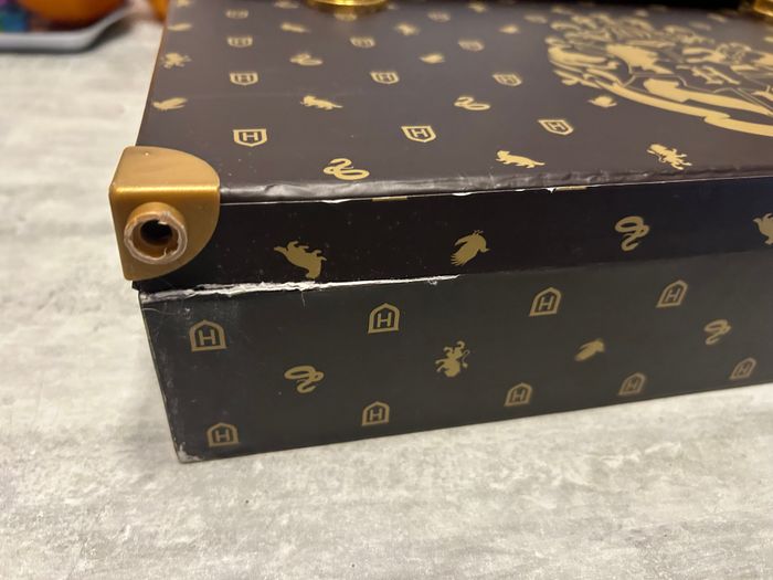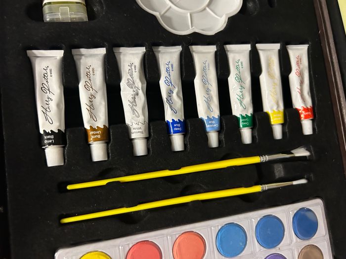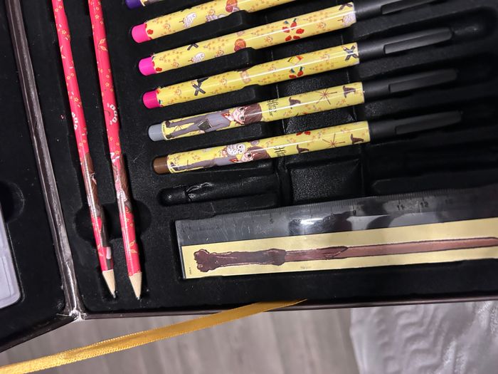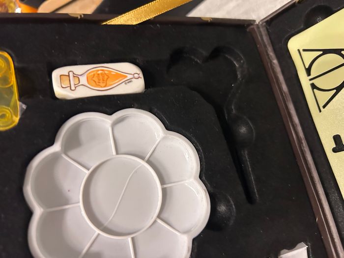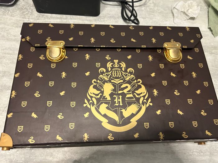 Je vends cette mallette de coloriage et peinture Harry Potter, parfaite pour les fans de la saga. manque la paire de ciseau impossible à retrouver ! et manque un feutre et peinture gouache utilisée sinon nickel style malle ancienne version harry potter voir usure sur les photos