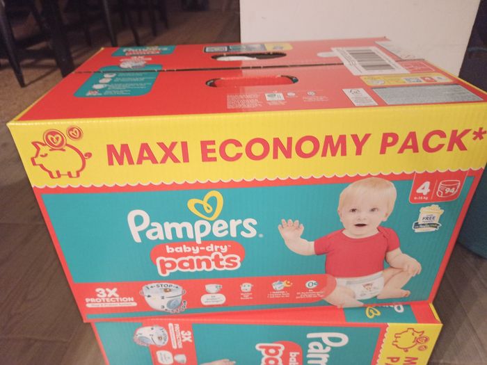 Lot de deux cartons Pampers pants de 94 couches taille 4 neuf total 188 couches