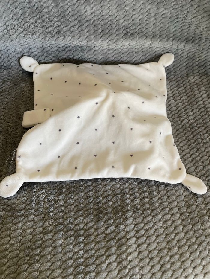 Doudou plat lapin blanc À motifs des étoiles grises Attache tétine Simba Toys Kiabi Occasion en excellent état Vous achetez le doudou que vous voyez sur la photo