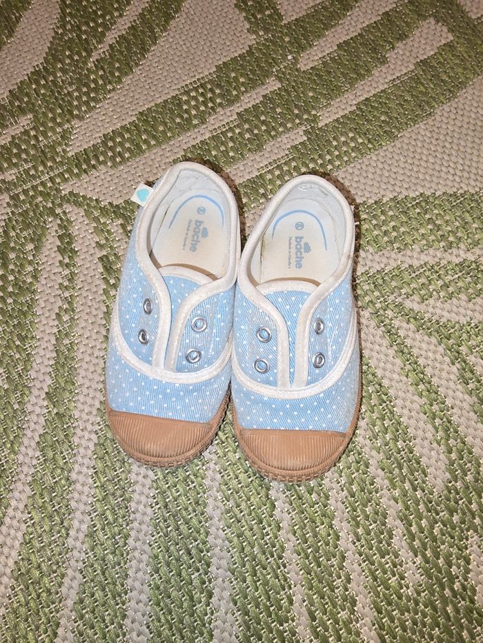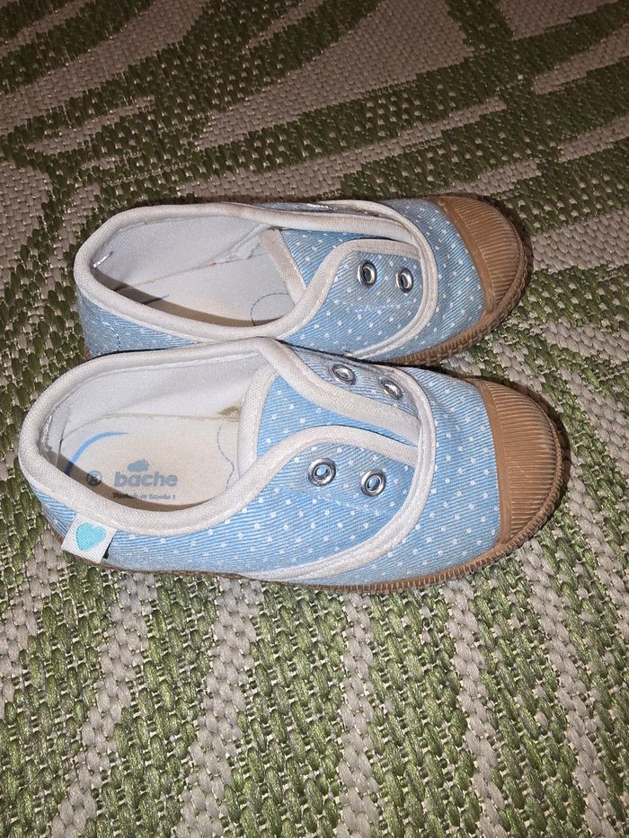 Basket fille Marque BACHE sans lacets en toile Couleur bleu ciel a pois blanc Renfort avant