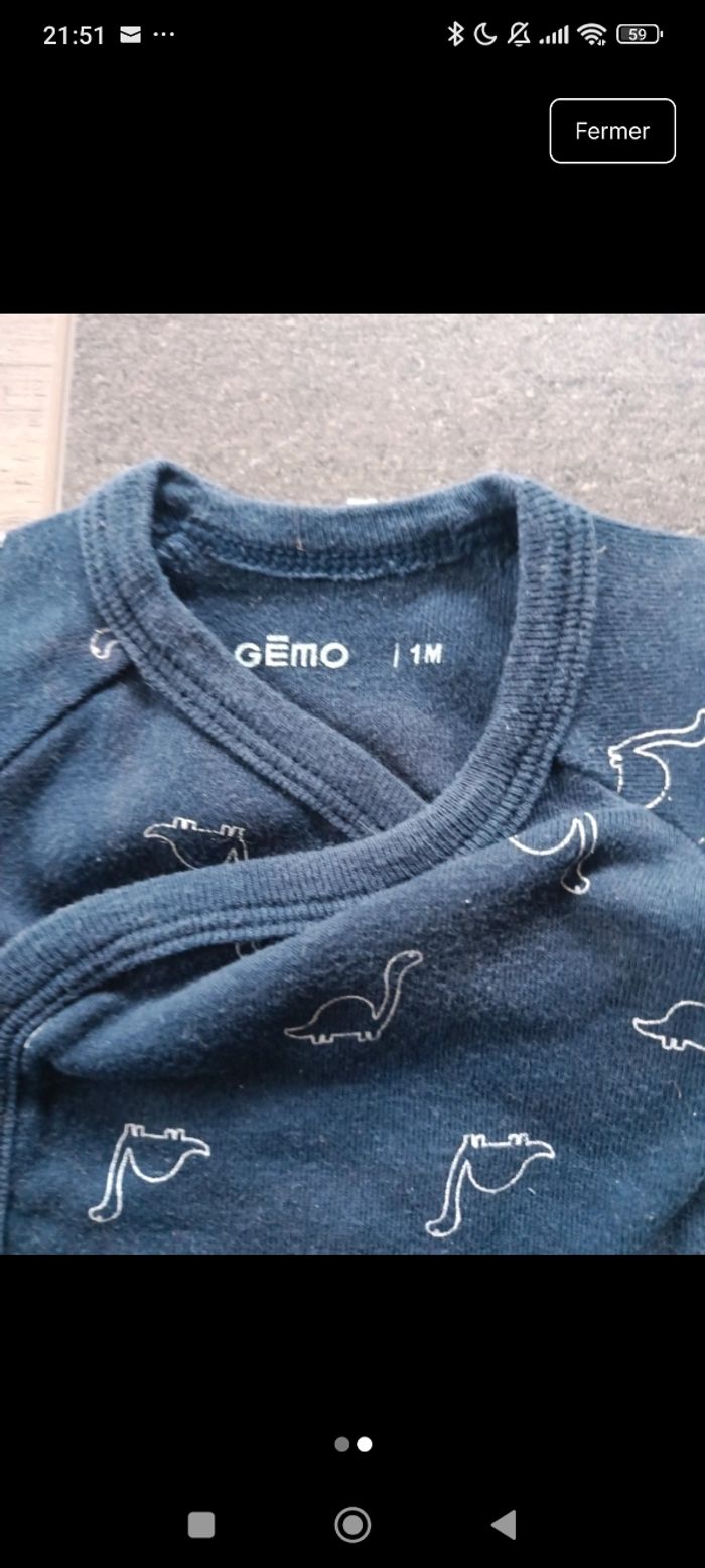 Body manches courtes Garçon 1 mois Thème : dinosaures Gémo