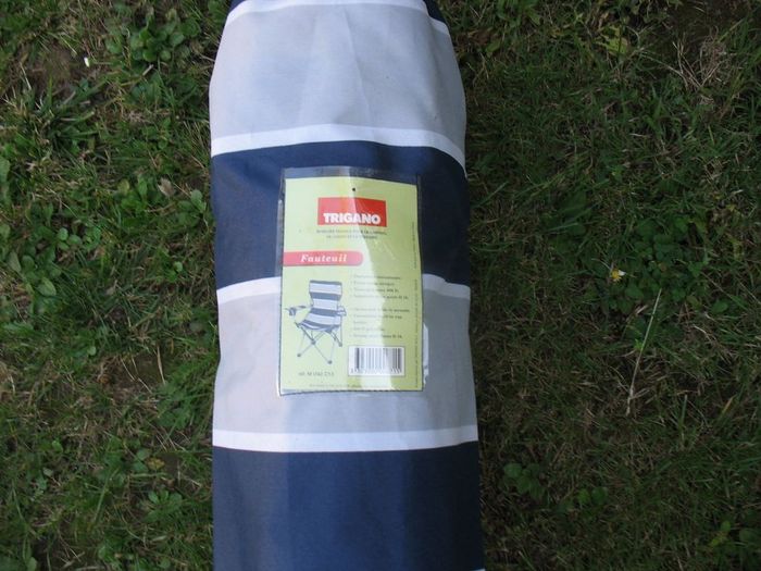 #Jardin_Nathg2210 FAUTEUIL PLIANT MARINE ET BLANC "TRIGANO" - NEUF - n°05 Le Fauteuil pliant en Acier - Marine et blanc rayé - Il est doté d'une ouverture facile, ainsi que d'un porte verre - Housse de transport. Tissu: polyester résistant 600D double épaisseur - Armature: acier laqué ∅ 16 mm - Dimensions ouvert: 54 x 55 x 40/89 cm - Dimensions pliées: 89 x 13 cm - Poids: 3,2 kg - Charge maxi: 100 kg Article Neuf dans son emballage d'origine - Sorti juste pour les photos. Possibilité d'envoyer d'autres photos sur simple demande. Maison non-fumeur - Sans animaux. Réduction lot activée. Allez voir mes autres ventes, je vide les placards. Beaucoup de vêtements de marque et beaucoup de jouets. Remise en mains propres ou possibilité d'envoi au tarif en vigueur à votre charge. Retour Refusé. Pour tout renseignement, n'hésitez pas à me contacter, je répondrai volontiers à vos questions. Réponse Assurée. Pour Consulter mes autres annonces tapez Nathg2210.