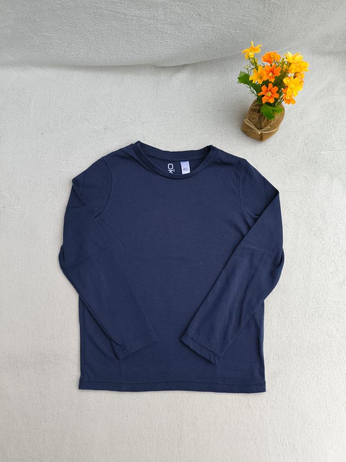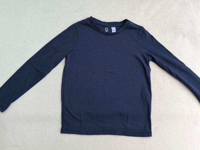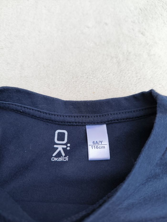 T-shirt à manches longues Marque Okaïdi Taille 6 ans, 116 cm • Coloris marine • Col rond • Tissu fin Peu porté, en très bon état #evelyne_garcons_6ans #evelyne_garcons