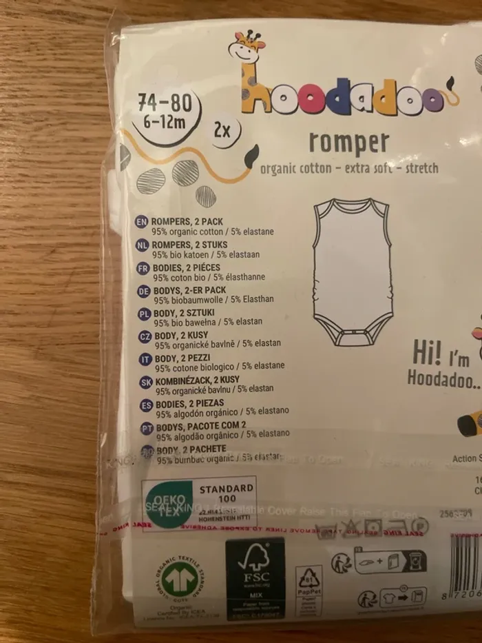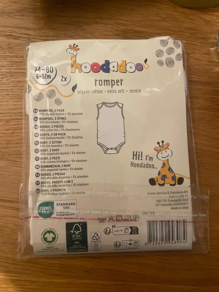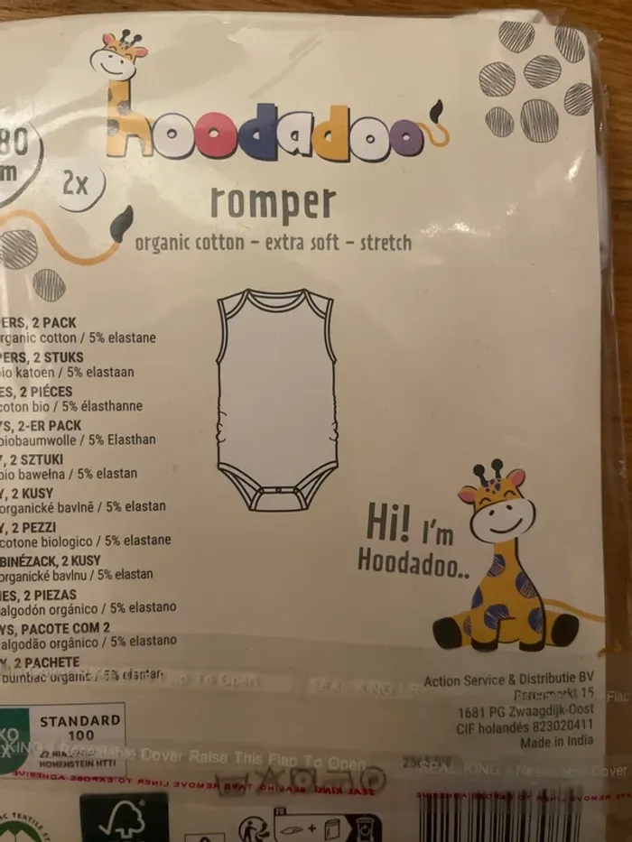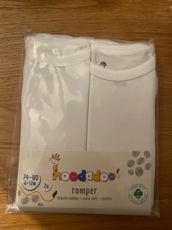 Lot de 2 barboteuses de couleur blanches sans manche en coton NEUF Hoodadoo