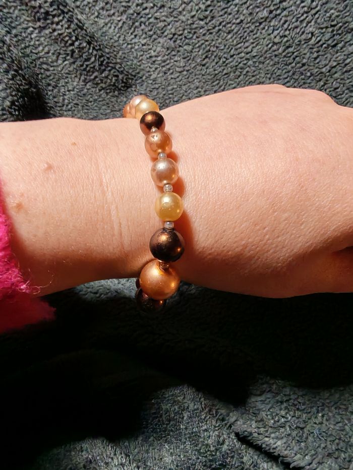 Bracelet de perles marron, beige et doré - photo numéro 1