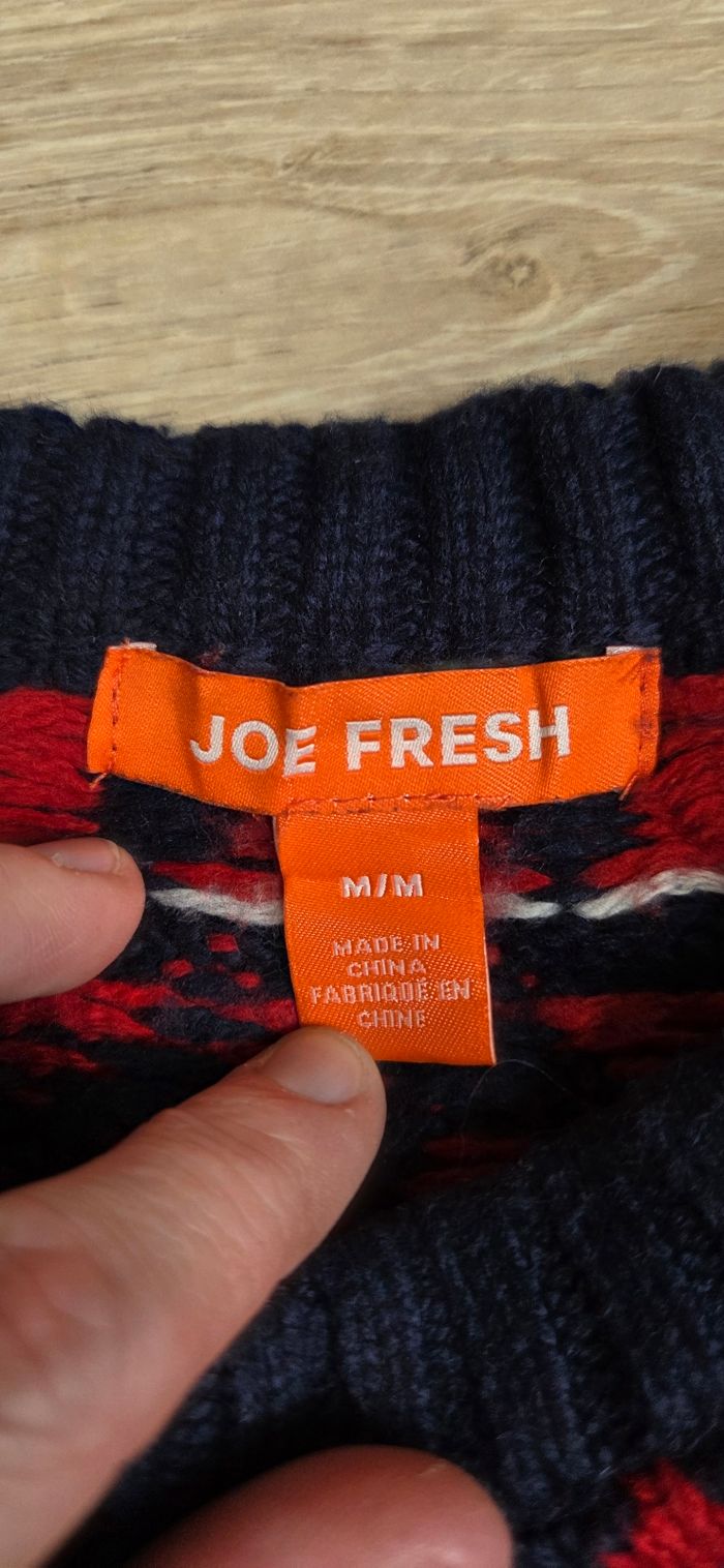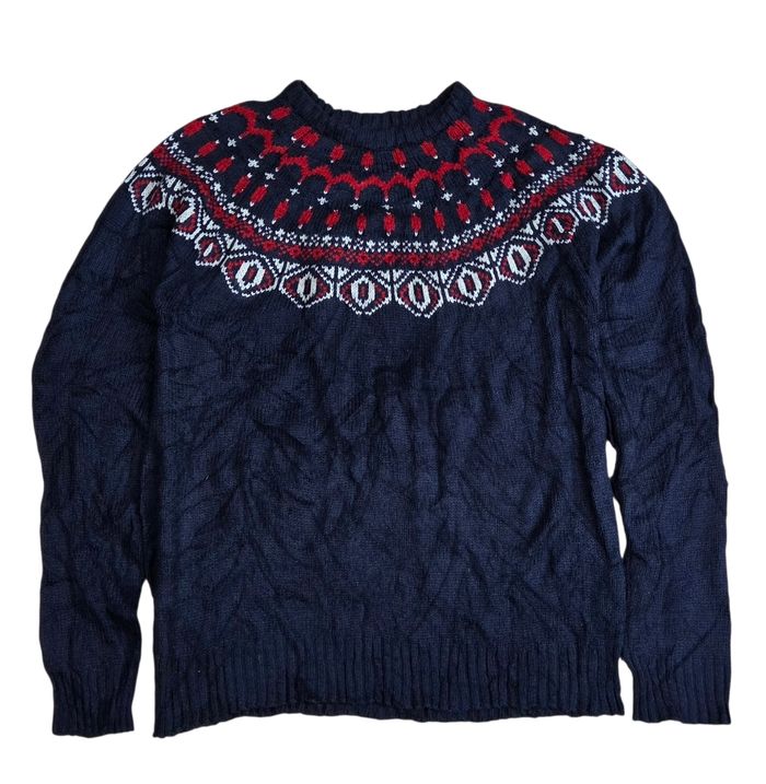 Pull jacquard Joe Fresh motif nordique bleu marine & rouge – Femme M - photo numéro 1