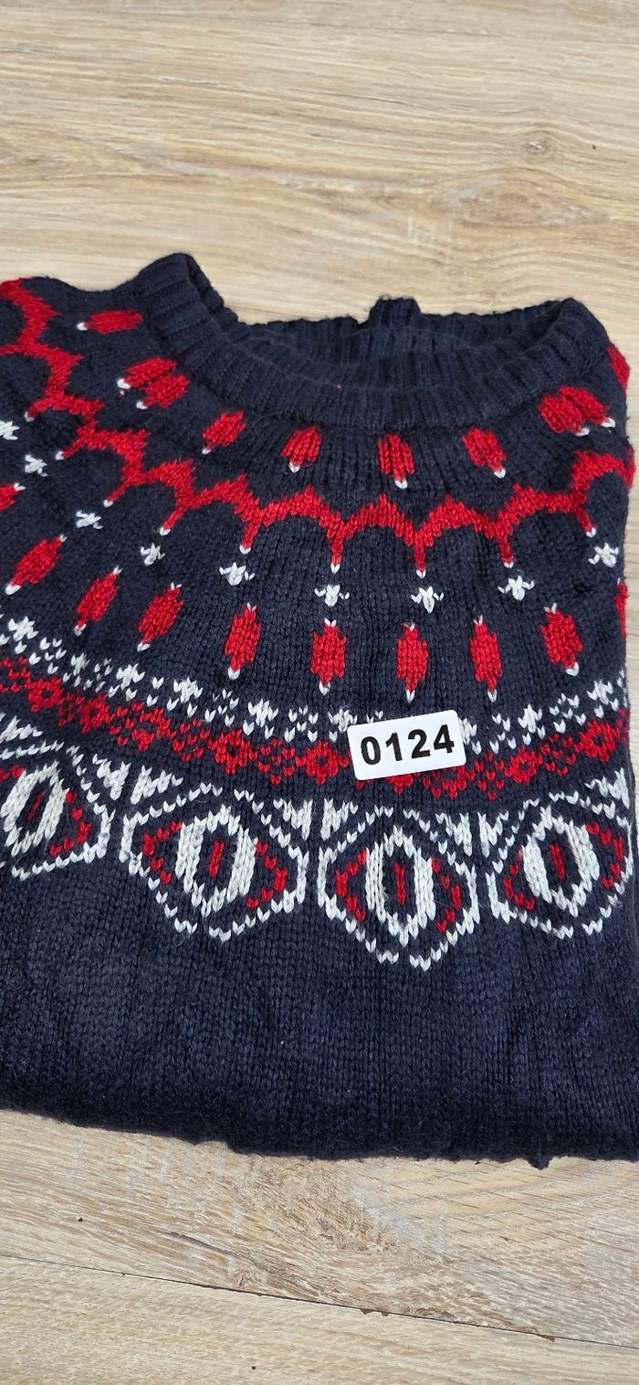 Pull jacquard Joe Fresh motif nordique bleu marine & rouge – Femme M - photo numéro 2