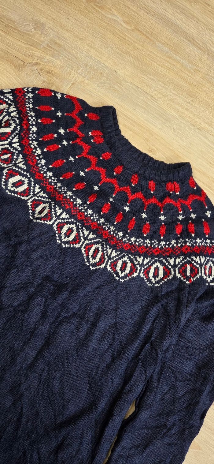 Pull jacquard Joe Fresh motif nordique bleu marine & rouge – Femme M - photo numéro 5