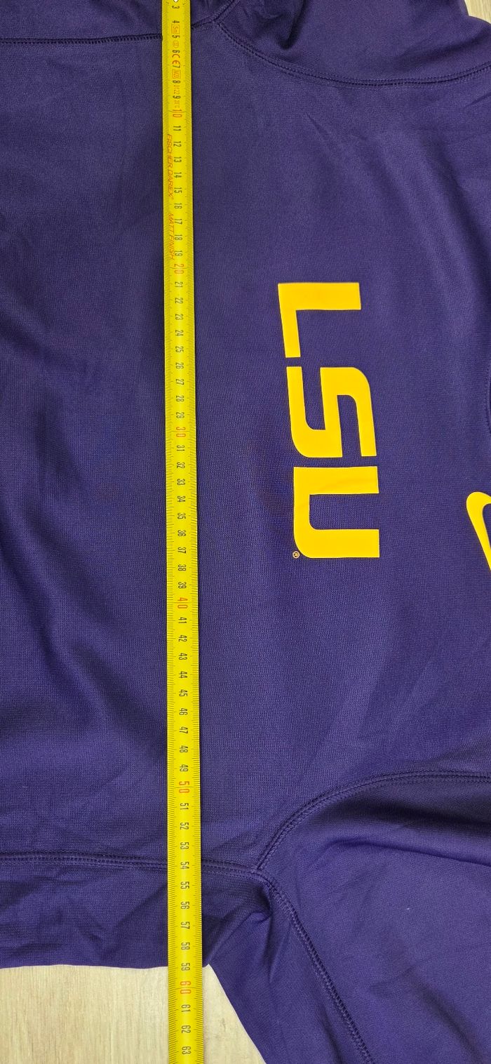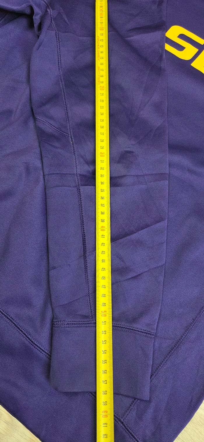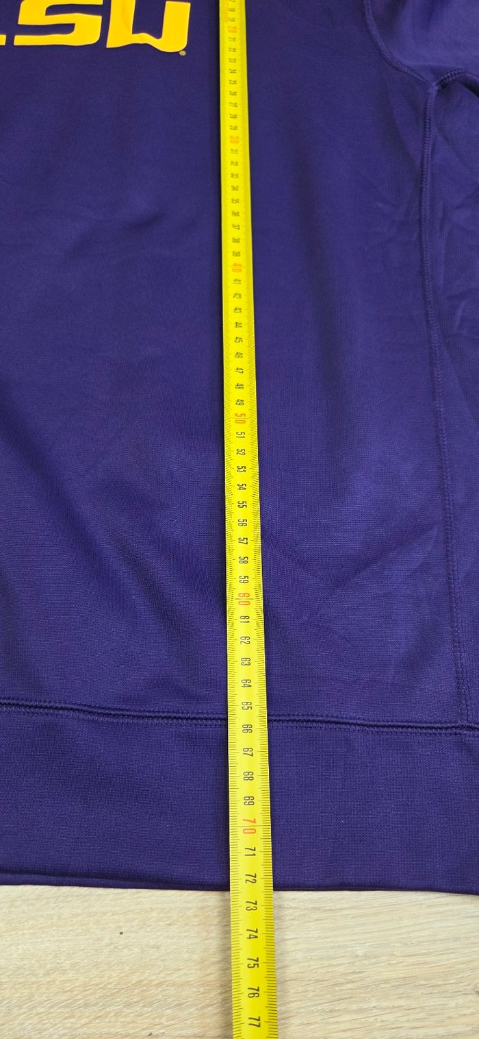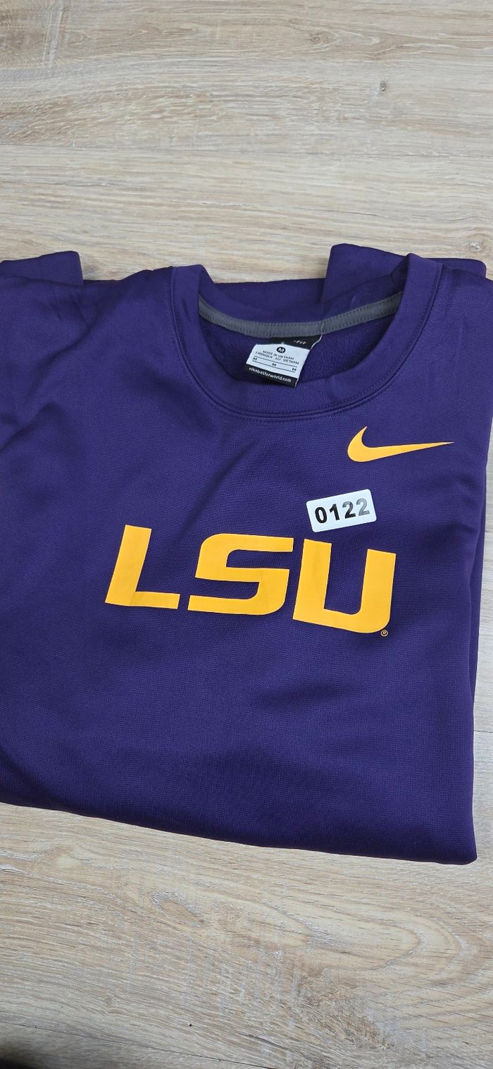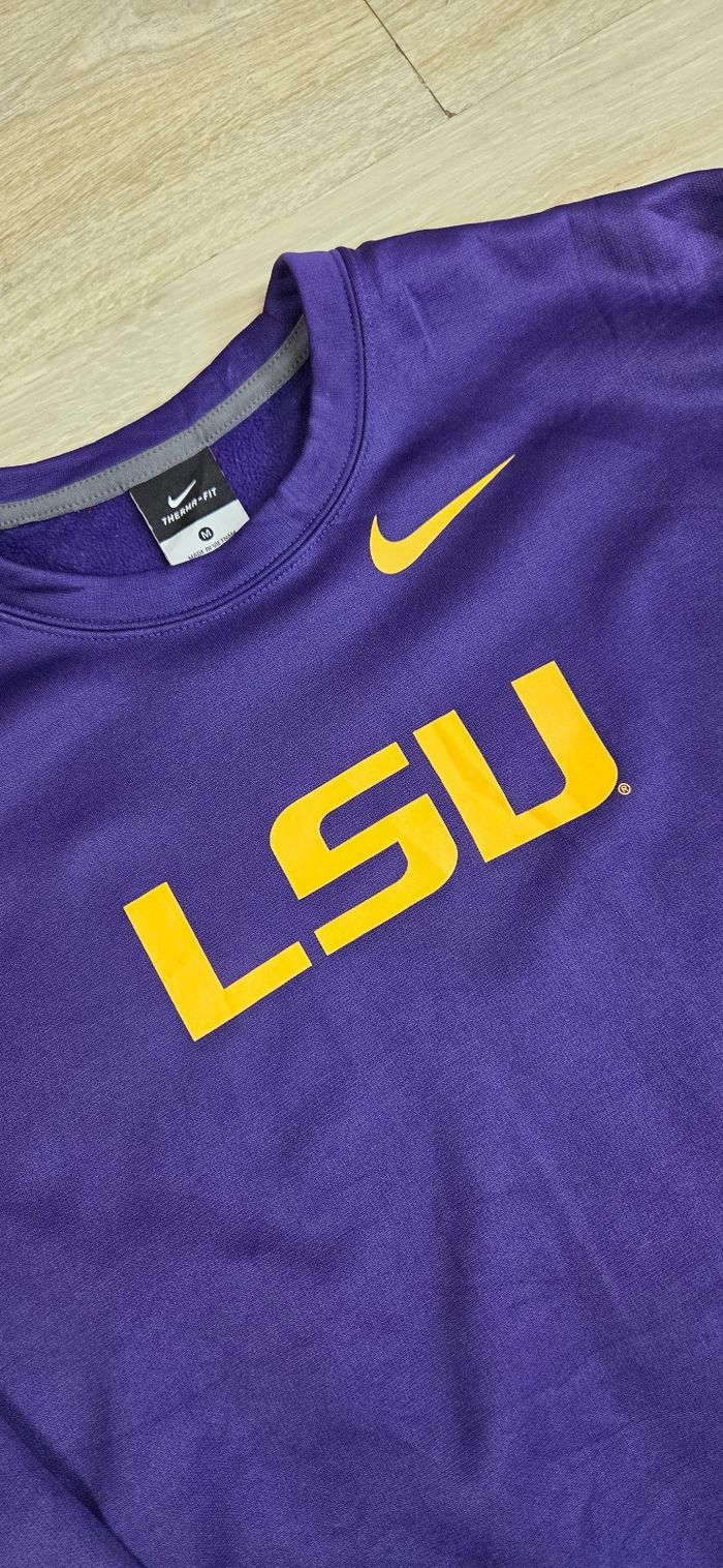 Sweat Nike officiel LSU (Louisiana State University) en très bon état Couleur violette avec logo LSU jaune et swoosh Nike sur la poitrine Technologie Therma-Fit : intérieur polaire chaud et confortable, idéal pour l’automne/hiver ou le sport Coupe classique, col rond, manches longues Composition : 100 % polyester Aucun trou ni tache, très bon état général Taille indiquée : M Mesures à plat : Longueur : 72 cm Aisselles : 59 cm Longueur de manche : 58 cm Envoi sous 24h