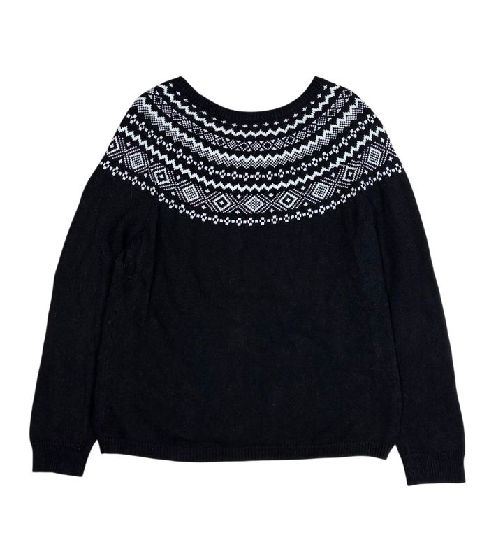 Pull Ethnic Retro vintage Talbots noir à motifs jacquard – Taille L - photo numéro 1