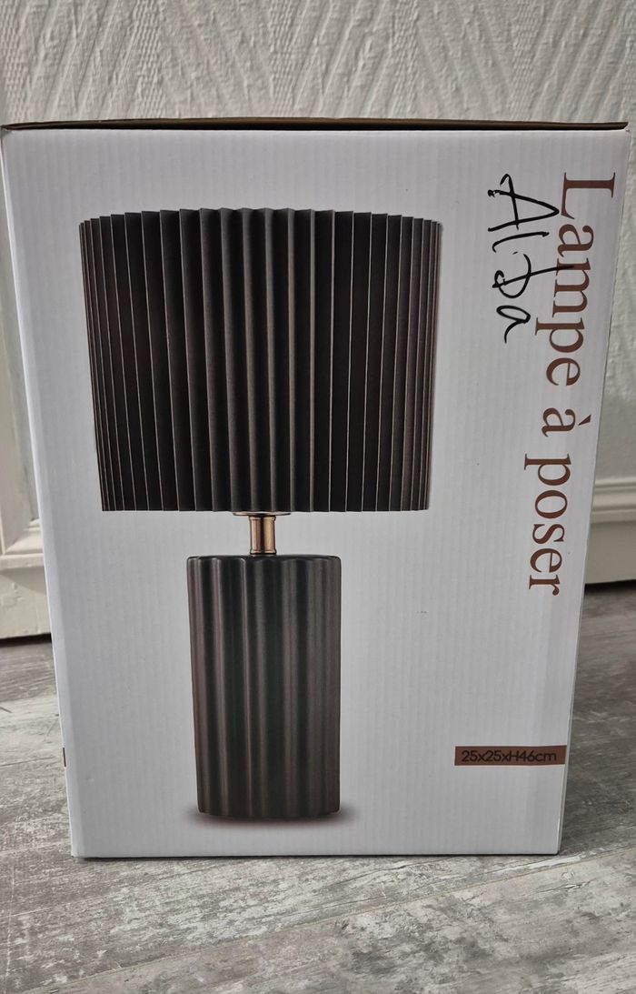 Vend un lot de deux lampes à poser "Alba" noires (25×25xh46cm) état neuf, jamais utilisées. L'une est encore emballée dans sa protection et l'autre a juste été déballée, mais jamais utilisée.