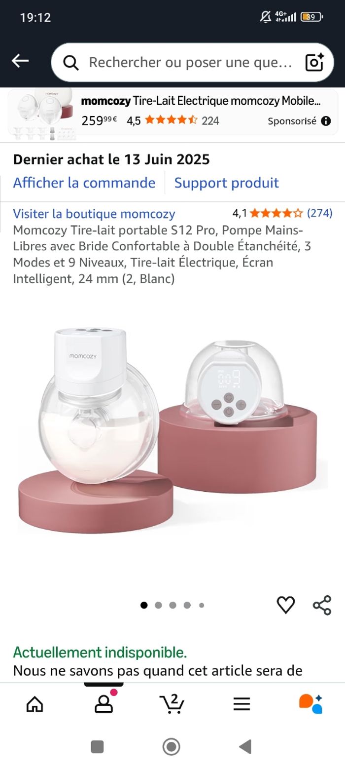 Bonjour je vends mon tire lait s12 pro de la marque mom cozy il a très peu servi, je vend avec des sachets de conservation environ 70 sachets et des recueil de lait