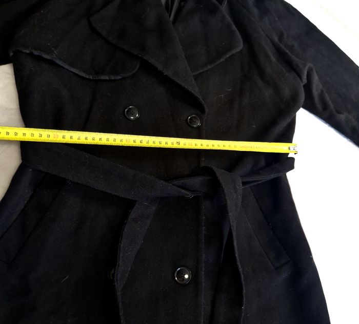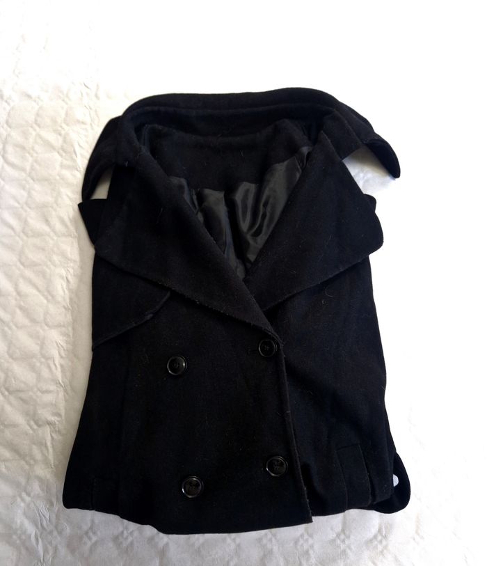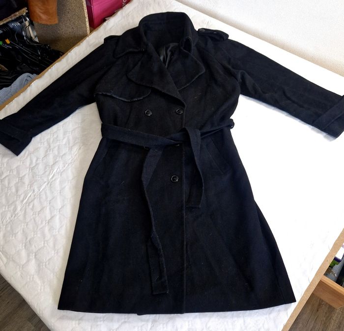 Un grand classique indémodable ! Ce trench-coat noir à la coupe structurée est idéal pour la mi-saison ou l'hiver. Il possède un double boutonnage élégant, une ceinture amovible pour marquer la taille et des pattes d'épaulettes pour un look "officier" chic. Sa grande longueur offre une protection optimale et une silhouette élancée. Note : Absence d'étiquette de marque et de taille, merci de bien vérifier les mesures ci-dessous. ​Style : Classique / Business / Officier. ​Coupe : Coupe longue (sous les genoux) et ceinturée. ​Sexe : Femme. ​Taille : Estimée L (voir mesures). ​Mesures à plat : Épaule à épaule env. 44 cm / Aisselle à aisselle env. 51 cm / Longueur totale env. 110 cm. ​Matière : Aspect laine mélangée, doublure satinée noire. ​État : Très bon état. ​📦 Bloc Pro : Expédition sous 24/48h et réductions sur les lots. ​#trenchcoat #manteaunoir #trenchlong #lookclassique #manteauhiver #chic #tailleL #tailleXL #moderesponsable