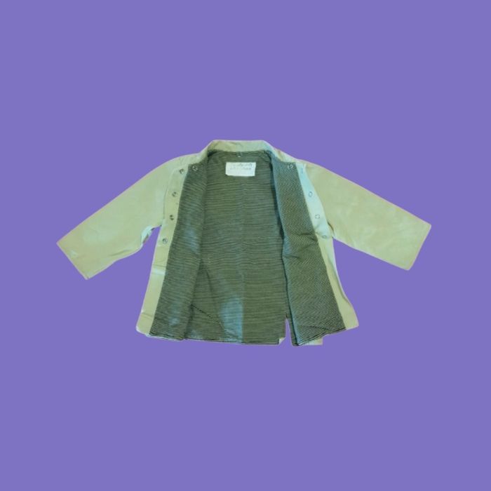 • 𝗠𝗮𝗿𝗾𝘂𝗲 : Peanuts • 𝗦𝘁𝘆𝗹𝗲 : Veste, petite veste bébé/enfant • 𝗖𝗼𝘂𝗹𝗲𝘂𝗿 : Côté 1 : Beige ; Côté 2 : Rayé noir et blanc • 𝗠𝗼𝘁𝗶𝗳𝘀 : Snoopy brodé au dos • 𝗠𝗮𝘁𝗶𝗲𝗿𝗲 : 100% coton • 𝗙𝗲𝗿𝗺𝗲𝘁𝘂𝗿𝗲 : Boutons pressions • 𝗧𝗮𝗶𝗹𝗹𝗲 : 24 mois, 86 cm • 𝗘𝘁𝗮𝘁 : Bon état, 1 tâche voir photo n°4