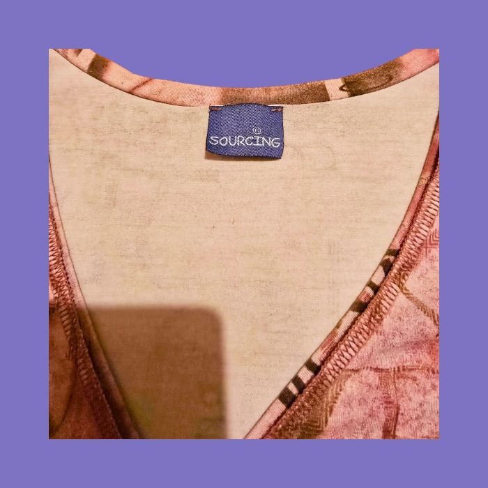 • 𝗠𝗮𝗿𝗾𝘂𝗲 : Sourcing • 𝗦𝘁𝘆𝗹𝗲 : Haut cache-cœur, décolleté V • 𝗠𝗼𝘁𝗶𝗳𝘀 : Imprimé "Lettres & Graphismes" abstrait • 𝗖𝗼𝘂𝗹𝗲𝘂𝗿 : Tons rouille, marron, rose pâle • 𝗠𝗮𝗻𝗰𝗵𝗲𝘀 : Longues • 𝗠𝗮𝘁𝗶𝗲𝗿𝗲 : Coton, vicose, élasthanne • 𝗧𝗮𝗶𝗹𝗹𝗲 : Unique • 𝗘𝘁𝗮𝘁 : Très bon état 📐 **𝗠𝗘𝗦𝗨𝗥𝗘𝗦** ▪︎ 𝐎𝐮𝐯𝐞𝐫𝐭𝐮𝐫𝐞 𝐝𝐮 𝐜𝐨𝐮 : 21 cm ▪︎ 𝐄𝐩𝐚𝐮𝐥𝐞𝐬 : 40 cm ▪︎ 𝐀𝐢𝐬𝐬𝐞𝐥𝐥𝐞𝐬 : 45 cm ▪︎ 𝐋𝐨𝐧𝐠𝐮𝐞𝐮𝐫 𝐝𝐞𝐬 𝐦𝐚𝐧𝐜𝐡𝐞𝐬 : 41 cm ▪︎ 𝐋𝐨𝐧𝐠𝐮𝐞𝐮𝐫 𝐝𝐞𝐬 𝐦𝐚𝐧𝐜𝐡𝐞𝐬 : 30 cm ▪︎ 𝐋𝐨𝐧𝐠𝐮𝐞𝐮𝐫 𝐭𝐨𝐭𝐚𝐥𝐞 : 57 cm ▪︎ 𝐋𝐚𝐫𝐠𝐞𝐮𝐫 𝐝𝐞 𝐜𝐞𝐢𝐧𝐭𝐮𝐫𝐞 : 42 cm