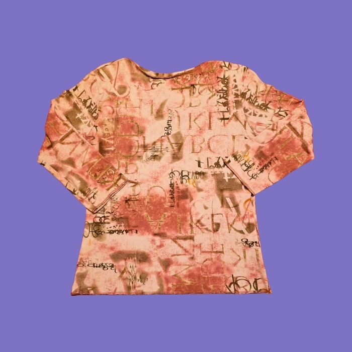 Haut Cache-Cœur Imprimé Lettres & Graphismes Sourcing Tons Rouille Rose Manches Longues Taille Unique Très Bon État - photo numéro 2