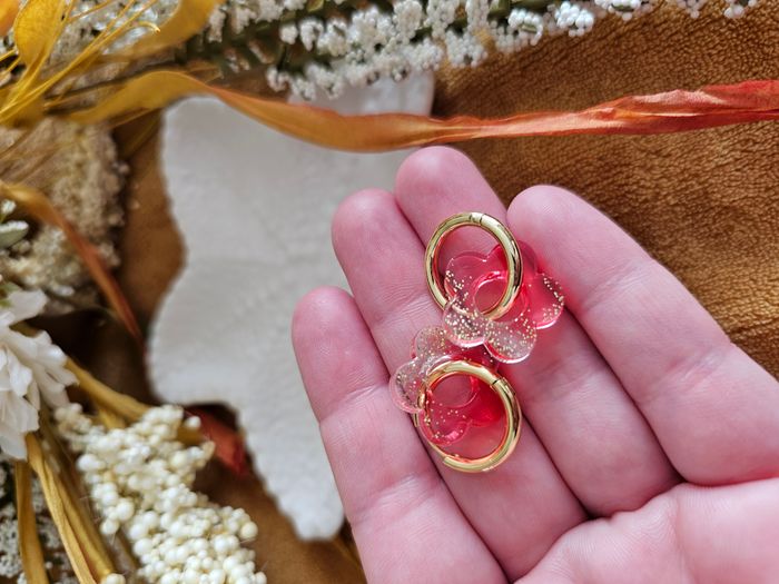 Boucles d'oreilles fleurs rouge et paillettes dorées Créoles dorées en acier inoxydable