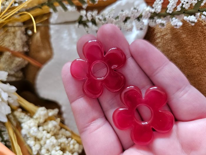 Paire de pampilles fleurs bordeaux - photo numéro 1