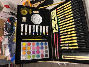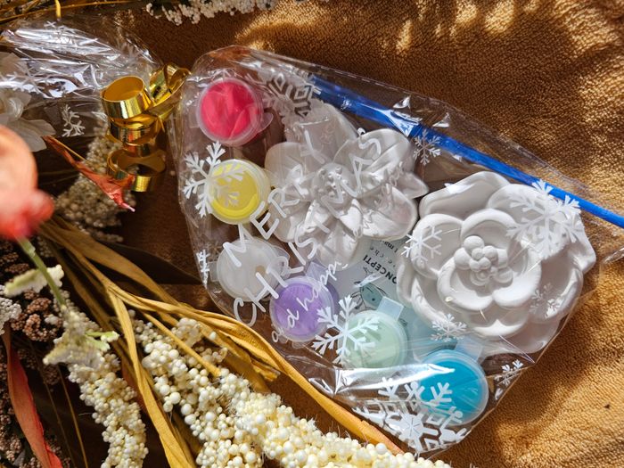Kit à peindre avec 2 fleurs en plâtre, 6 couleurs de peinture et 2 pinceaux