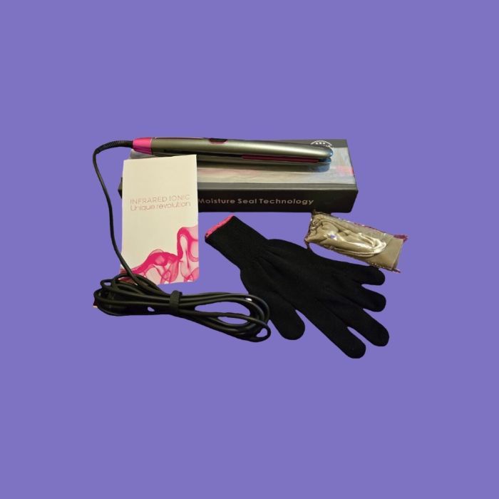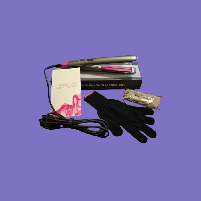 - Un lisseur - Deux pinces à cheveux - Une pochette de rangement - Un gant Anti-chaleur 𝐂𝐚𝐫𝐚𝐜𝐭𝐞𝐫𝐢𝐬𝐭𝐢𝐪𝐮𝐞𝐬 𝐭𝐞𝐜𝐡𝐧𝐢𝐪𝐮𝐞𝐬 : • 𝐀𝐥𝐢𝐦𝐞𝐧𝐭𝐚𝐭𝐢𝐨𝐧 : 40W-59W • 𝐂𝐞𝐫𝐭𝐢𝐟𝐢𝐜𝐚𝐭𝐢𝐨𝐧 : ce • 𝐂𝐡𝐞𝐯𝐞𝐮𝐱 𝐚𝐩𝐩𝐥𝐢𝐜𝐚𝐛𝐥𝐞𝐬 : Sec • 𝐂𝐨𝐧𝐭𝐫𝐨𝐥𝐞𝐮𝐫 𝐝𝐞 𝐓𝐞𝐦𝐩𝐞𝐫𝐚𝐭𝐮𝐫𝐞 : Numérique • 𝐃𝐢𝐚𝐦𝐞𝐭𝐫𝐞 𝐝𝐮 𝐜𝐨𝐧𝐝𝐮𝐜𝐭𝐞𝐮𝐫 𝐭𝐡𝐞𝐫𝐦𝐢𝐪𝐮𝐞 : 16 à 20 mm • 𝐃𝐢𝐦𝐞𝐧𝐬𝐢𝐨𝐧𝐬 𝐝𝐞 𝐥𝐚 𝐩𝐥𝐚𝐪𝐮𝐞 𝐜𝐡𝐚𝐮𝐟𝐟𝐚𝐧𝐭𝐞 : 90x42mm • 𝐃𝐮𝐫𝐞𝐞 𝐝𝐞 𝐯𝐢𝐞 𝐝𝐞 𝐥𝐚 𝐩𝐥𝐚𝐪𝐮𝐞/𝐛𝐚𝐫𝐫𝐞 𝐭𝐡𝐞𝐫𝐦𝐢𝐪𝐮𝐞 : Plus de 50 000 fois • 𝐌𝐚𝐭𝐞𝐫𝐢𝐚𝐮 : ABS • 𝐌𝐚𝐭𝐞𝐫𝐢𝐚𝐮 𝐝𝐞 𝐩𝐥𝐚𝐪𝐮𝐞/𝐛𝐚𝐫𝐫𝐞 𝐭𝐡𝐞𝐫𝐦𝐢𝐪𝐮𝐞 : Céramique tourmaline • 𝐀𝐬𝐬𝐞𝐦𝐛𝐥𝐚𝐠𝐞 𝐝𝐞 𝐥𝐚 𝐪𝐮𝐞𝐮𝐞 𝐝𝐮 𝐜𝐨𝐫𝐝𝐨𝐧 𝐝’𝐚𝐥𝐢𝐦𝐞𝐧𝐭𝐚𝐭𝐢𝐨𝐧 : Rotation à 360° • 𝐒𝐨𝐮𝐫𝐜𝐞 𝐃'𝐚𝐥𝐢𝐦𝐞𝐧𝐭𝐚𝐭𝐢𝐨𝐧 : Electric • 𝐓𝐞𝐦𝐩𝐞𝐫𝐚𝐭𝐮𝐫𝐞 𝐌𝐚𝐱. : 230°𝗖 • 𝐓𝐞𝐦𝐩𝐞𝐫𝐚𝐭𝐮𝐫𝐞 𝐌𝐢𝐧. : 130 𝗖 • 𝐓𝐞𝐦𝐩𝐬 𝐝𝐞 𝐬𝐭𝐲𝐥𝐞 𝐨𝐩𝐭𝐢𝐦𝐚𝐥 : 1-2 Min. • 𝐕𝐨𝐥𝐭𝐚𝐠𝐞 : 100-240v (tension duelle)