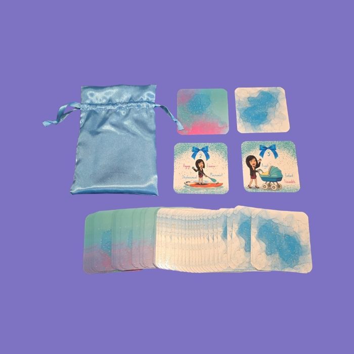 Le Candy Blue Oracle, oracle funny et sweety facile d’utilisation grâce à ses mots clés pour toutes guidances générales🌞 Taille 6,5 x 6,5 cm, pelliculage brillant, 48 cartes, pas de livret des mots clés directement sur les cartes et des images très parlantes. Pochette satin bleu. Auto édité, conçu et imprimé en France.