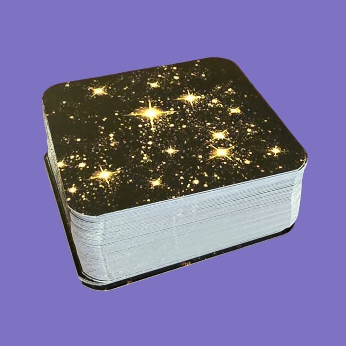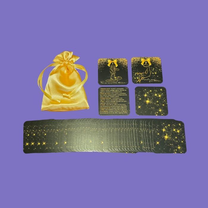 Cet oracle t'aidera à comprendre d'où proviennent tes problématiques, à te connaître et à te montrer le chemin de la guérison. Taille 6,5 x 6,5 cm, pelliculage brillant, 55 cartes + 4 cartes de significations. Auto édité, conçu et imprimé en France. ISBN : 978-2-9582231-0-6
