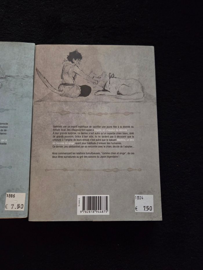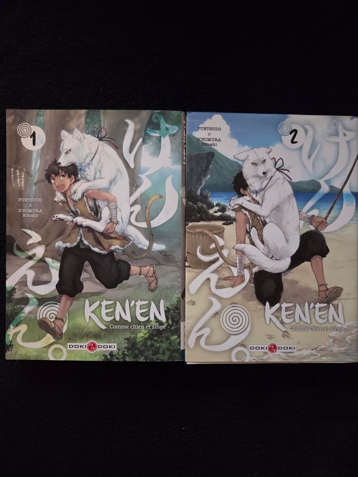 KEN'EN comme Chien Et Singe Un duo irrésistible au coeur du Japon légendaire ! Une famille de kakuen, des créatures mi-hommes, mi-singes, a élu domicile dans le vieux sanctuaire abandonné du village de Mitsuke, dans la province d'Enshû. L'un deux, Mashira, a adopté un chien magique tueur de démons envoyé initialement pour l'éliminer, mais qui semble désormais déterminé à veiller fidèlement sur son maître. Alors que le moine Benzon continue son enquête au village, Mashira, qui a remis à l'eau une splendide anguille blanche dans le fleuve Tenryû, se réveille au Palais du Dragon ! Neufs. Possibilité de grouper avec de nombreux autres articles en vente🌞🐈🐈🐱 Envoi sous 24h_48h 🐱 Rapide, soigné et 🎥