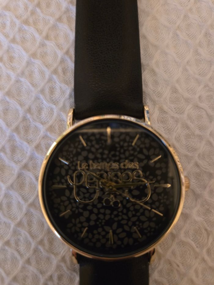 Montre pour femme Marque le temps des cerises Bracelet synthétiques noire. Contours Doré Porter une seule fois comme neuve