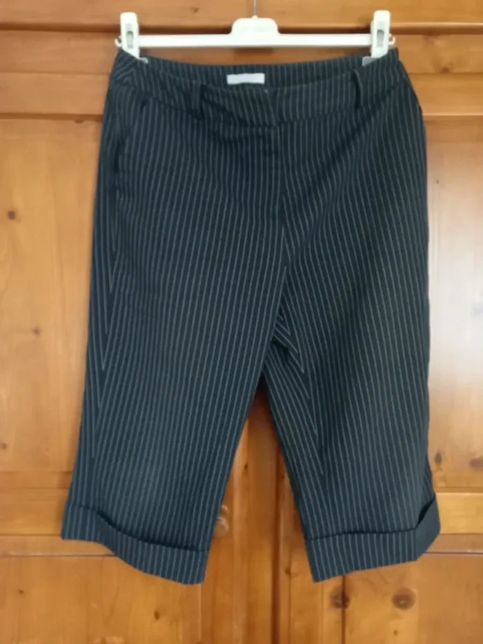 pantacourt rayé marine la redoute taille 38 petite trace blanche en haut à l'arrière (part sûrement à la machine car n'y était pas avant lavage) #M38femmezaza210822