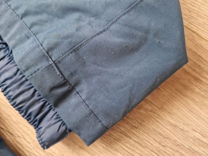 En très bon état général. Quelques accros en bas du pantalon a l'arrière. Cf photo. Couleur bleu canard.