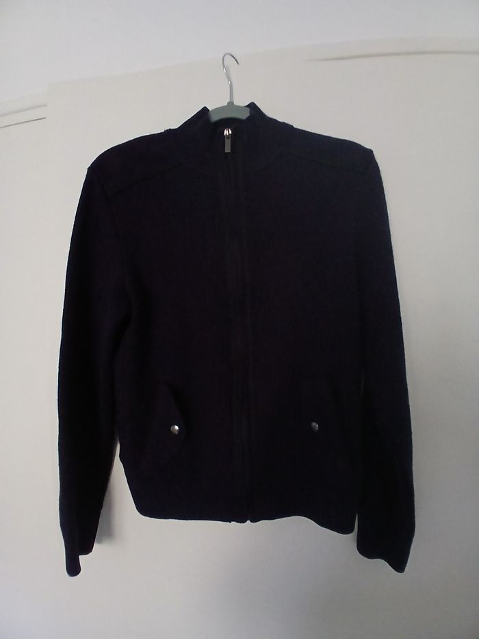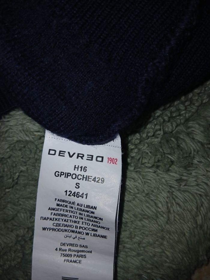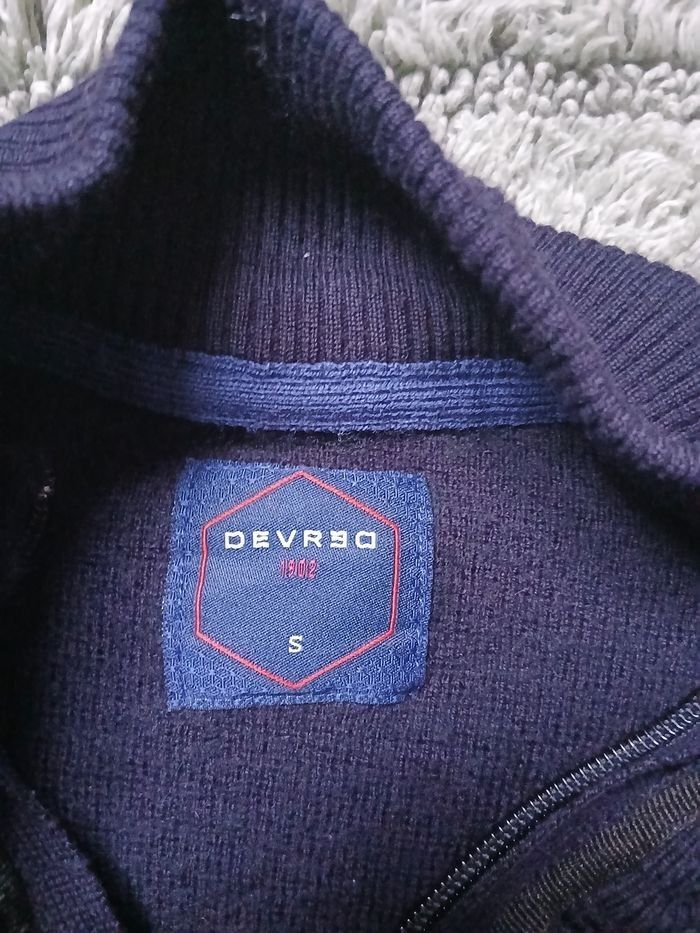 Pull bleu marine à zippé Marque: Devred 1902. L’étiquette indique une taille S, mais la coupe peut correspondre à un S/M selon la morphologie. Maille douce, col montant, fermeture éclair noire. Très bon état Plus beau en vrai