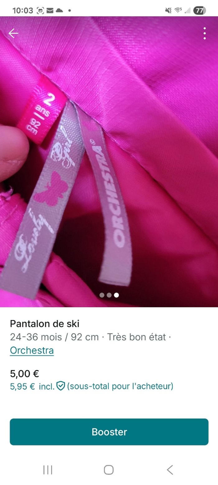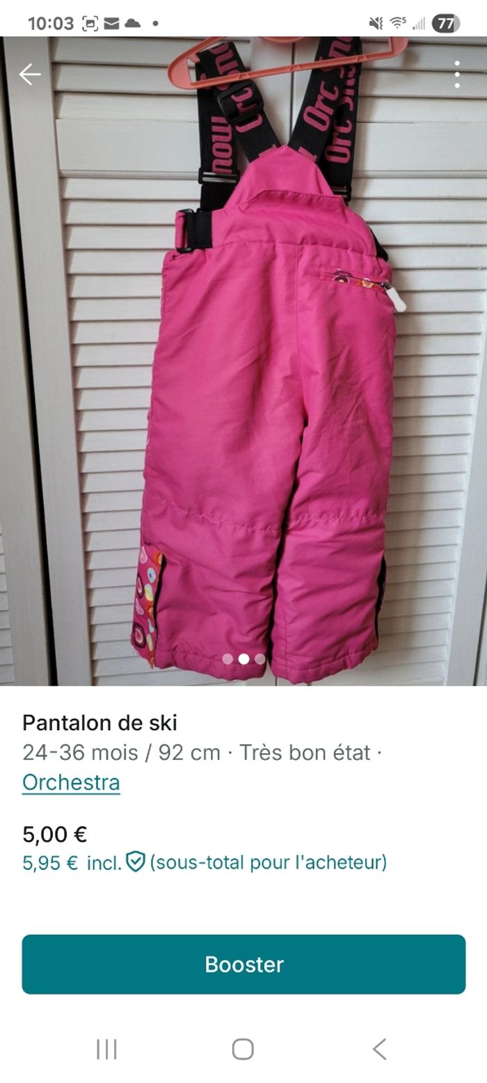 Pantalon de ski 2 ans (taille grand) en très bon état