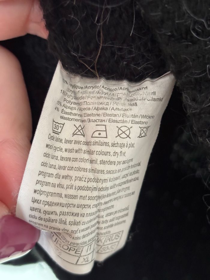 En très bon état Noir avec « poils » d’alpaga gris/blancs Super pull « basique » Pensez à faire des lits pour bénéficier de réductions
