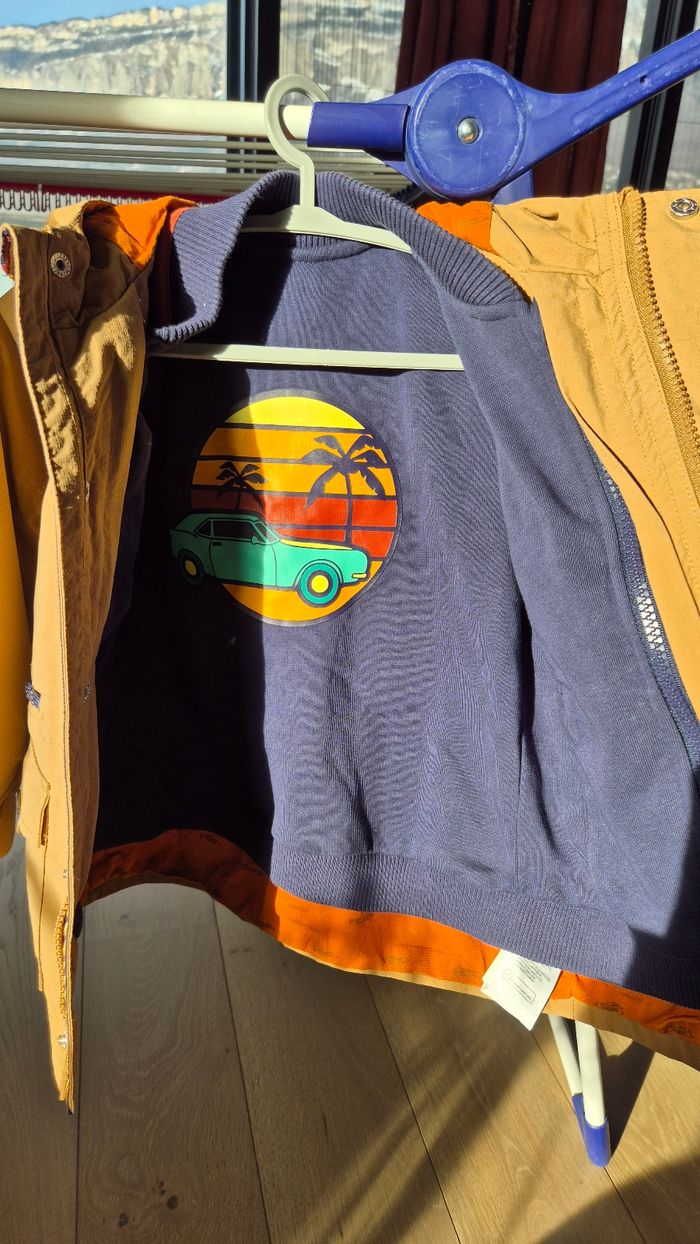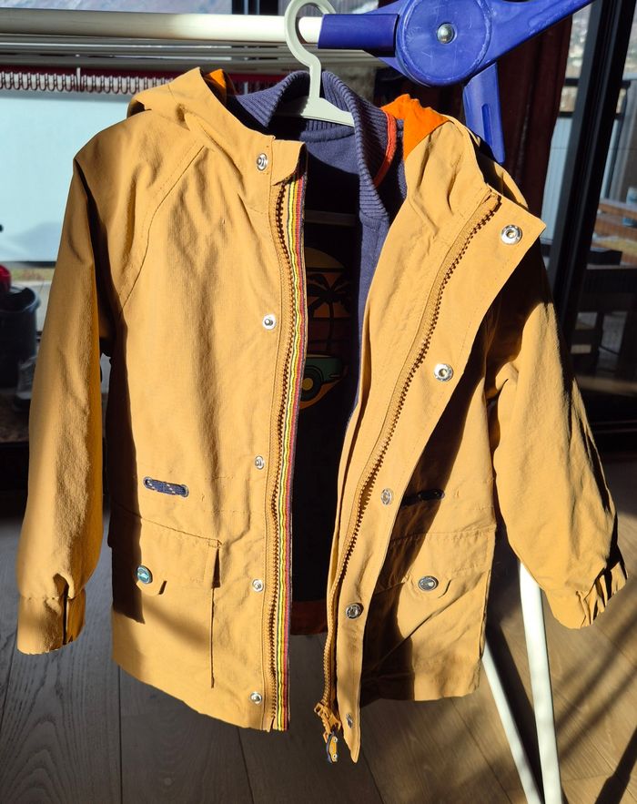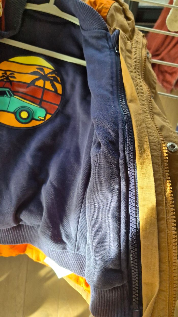 Ciré marron avec doublure amovible pouvant s'enlever et se remettre très facilement par système de zip et de petits boutons. En très bon état