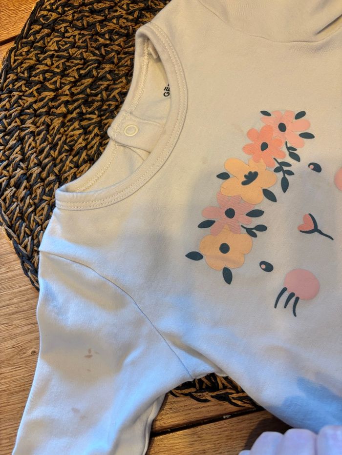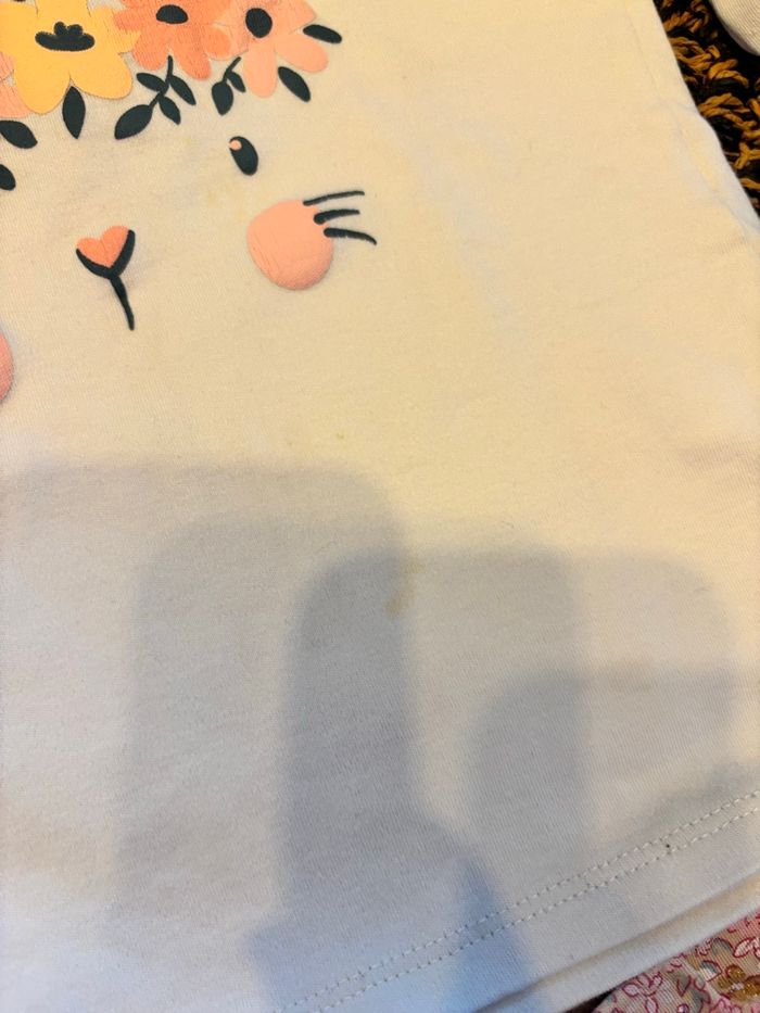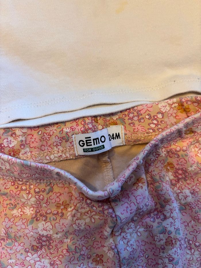 Jolie pyjama en coton 2 pièces, collection de cette année, le bas est en très bon état, le haut comporte des taches. Gémo 24 mois