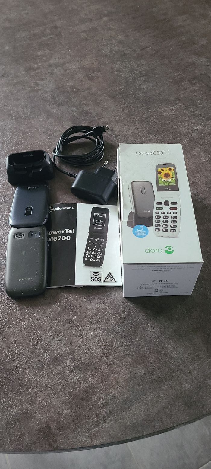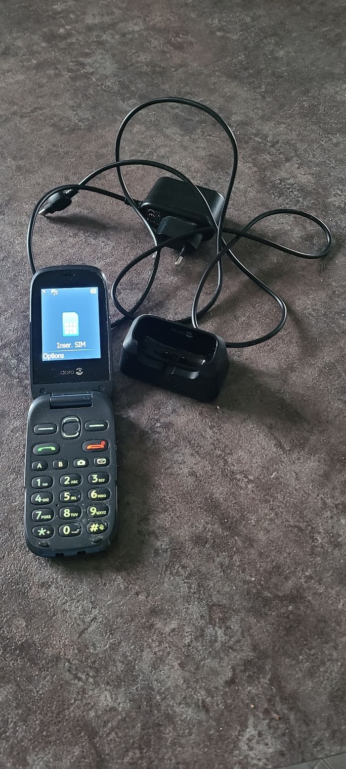 Vend téléphone portable Doro très bon état juste le combiné est légèrement collant malgré le nettoyage avec chargeur et boîte d'origine Vend plusieurs articles dans mon dressing