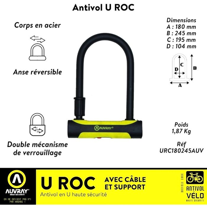 Antivol moto, vélo, Uroc Diamètre 16 Valeur magasin 80 euros