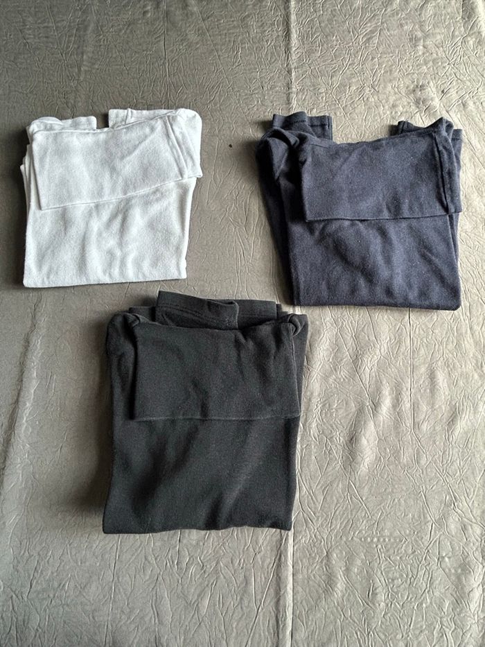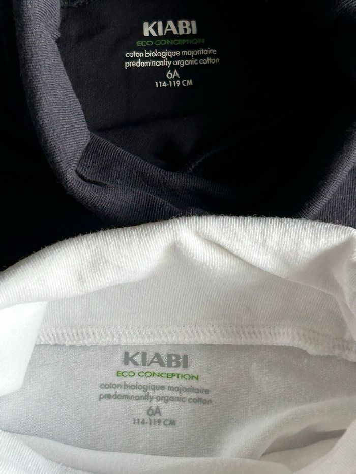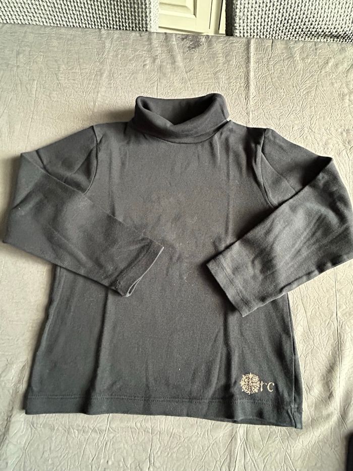 lot de 3 sous-pulls unis classiques pour fille. Taille 6 ans / 116 cm. -1 blanc et 1 bleu marine de la marque « Kiabi » en excellent état. -1 noir de la marque « Orchestra » en très bon état également .