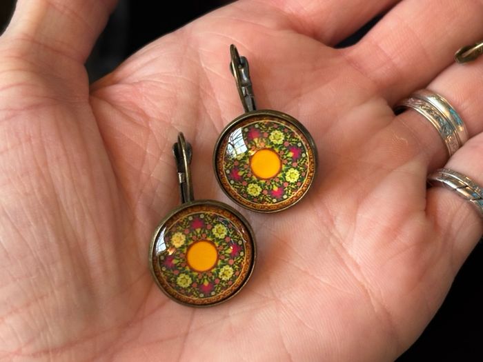 Boucles d’oreilles dormeuses excellent état. Portées une seule fois. Envoi rapide et soigné garanti.