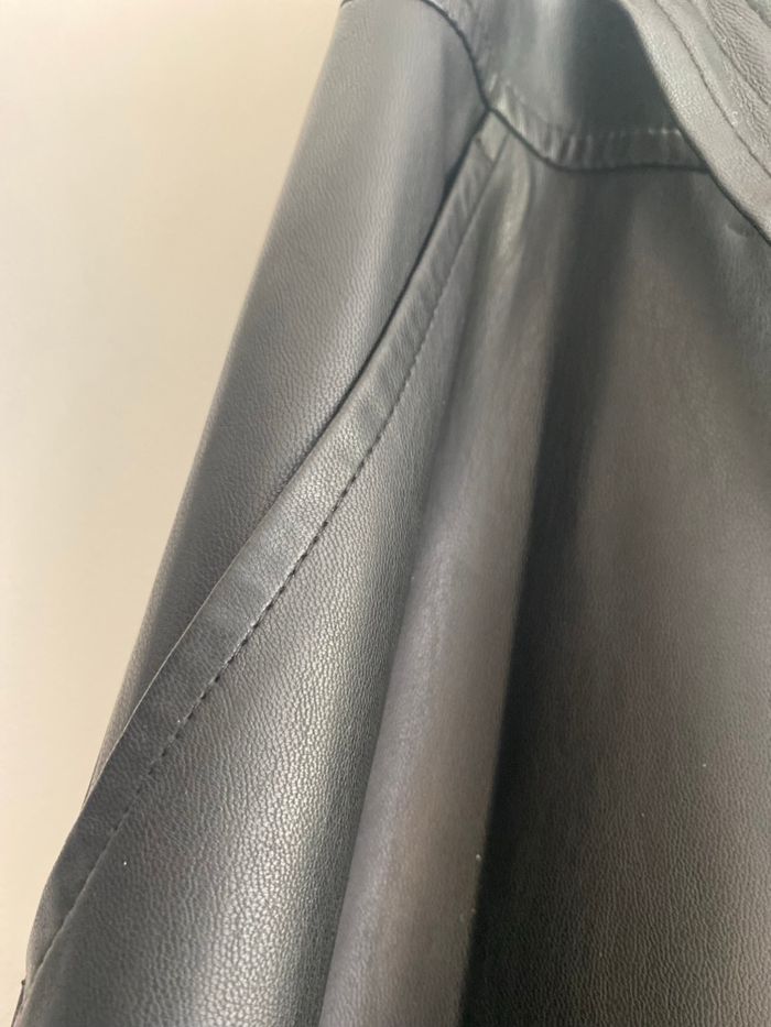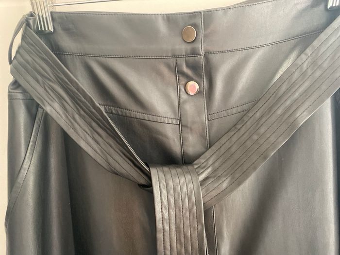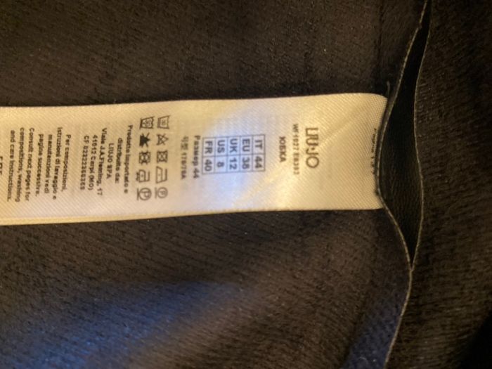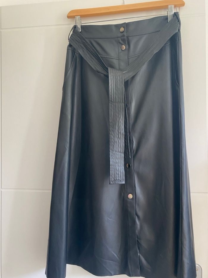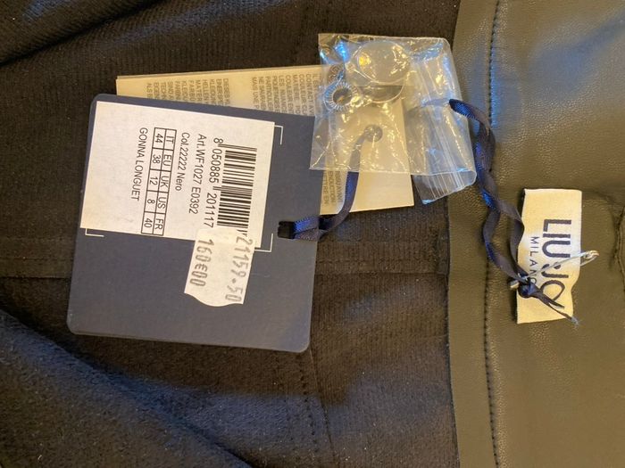 Jupe longue Liu Jo, neuve avec étiquette, jamais portée, aspect simili cuir noir, boutonnée avec des pressions, 2 poches et ceinture avec passants. 100% polyester, se lave à 30. Taille 40 française, il est noté sur l'étiquette 44, c'est la taille italienne. Longueur de la jupe83 cm, elle est évasée largeur du bas90 cm.