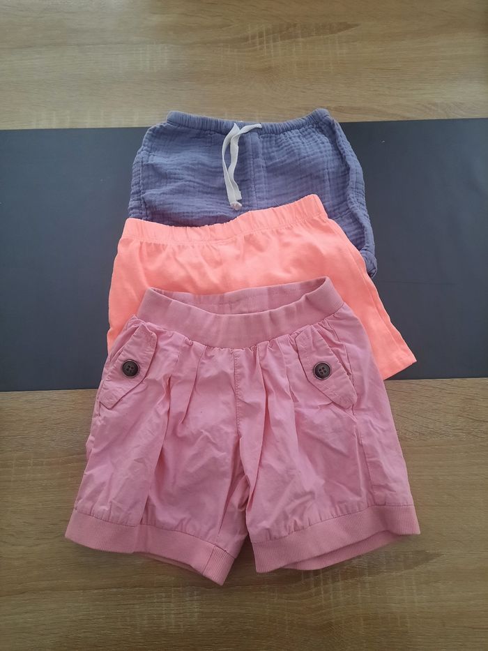 Le lot comprend, 2 robes 1 jupe 1 salopette 3 shorts Plusieurs marques, kiabi , tissaia ... Taille 18 mois En bon état