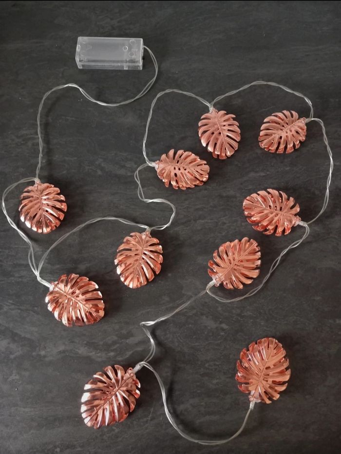 Guirlande lumineuse de fête. Motif palmier en rose cuivré 10 palmiers Lampes LED 1,65 m de long Fonctionne avec deux piles AA(non incluses)