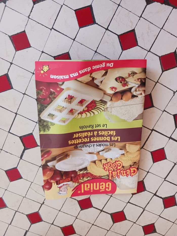 Genial cook composé d un set de raviolis et de 3 moules à chaussons. 1 moule toujours dans son emballage. Manque le rouleau, fourni avec la notice