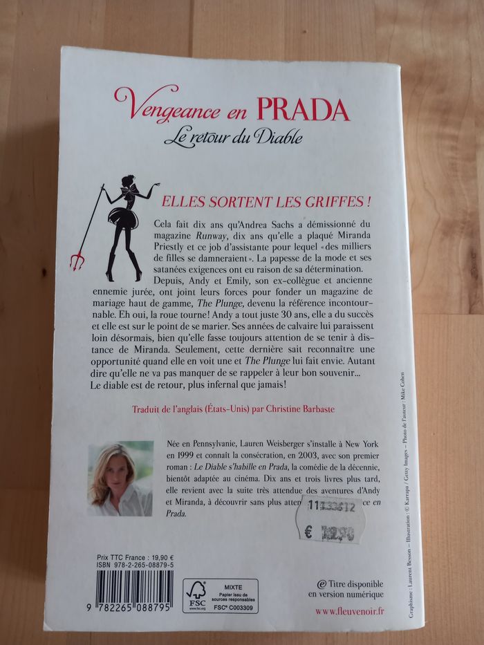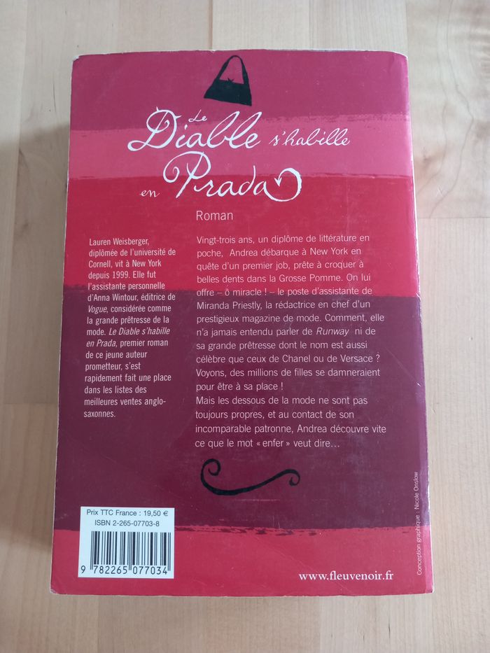 📚 Titre : Le Diable s’habille en Prada – Lauren Weisberger 📌 État : Satisfaisant - voir les photos 📦 Format : Livre broché 📚 Titre : Vengeance en Prada – Le retour du Diable de Lauren Weisberger 📌 État : Satisfaisant (quelques traces d'usure – voir photos) 📦 Format : Livre broché 💬 Détails : 🔹 Quelques marques d'usure sur la couverture (cf. photos) 🔹 Parfait pour les fans de mode, de comédies contemporaines