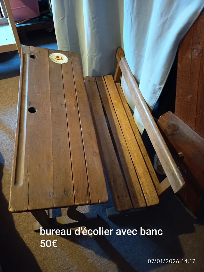 Vend bureau d'écolier en bois avec banc. Pas de livraison. À venir chercher sur place