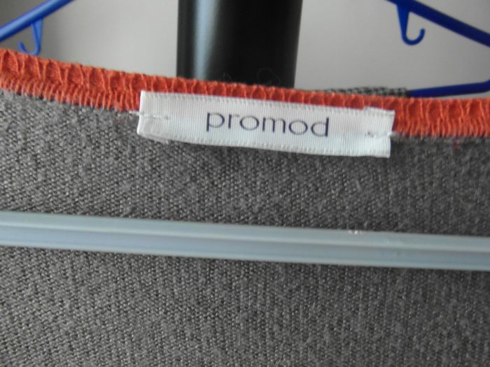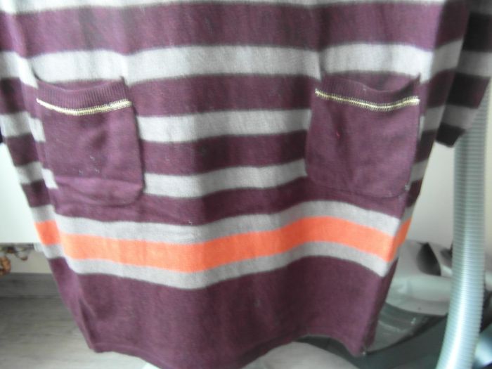 coton - 2 poches devant bon état - rayée gris orange violet PROMOD T46 (épaules 44 cm ; aisselles 47 cm ; longueur 93 cm)