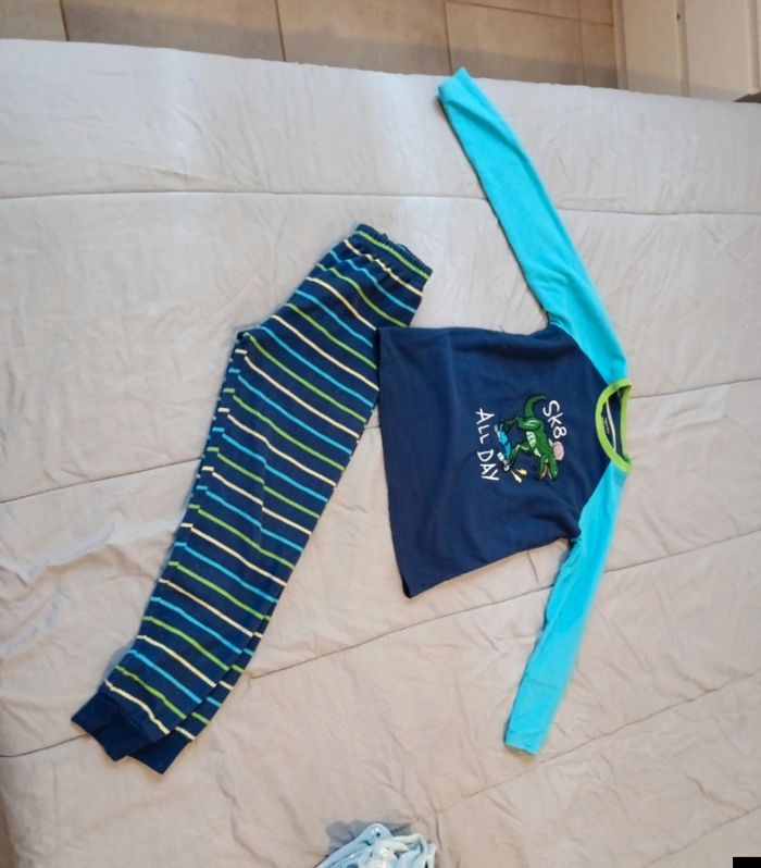 Lot de pyjamas en taille 8 ans comprenant : -un pyjama chaud Primark taille 7/8 ans en bon état -un pyjama la twisty company en taille 8 ans en bon état -un pyjama chaud Orchestra en taille 8 ans en bon état -2 hauts de pyjamas chauds -un haut de pyjama manche longue Star Wars et bas long Gémo. Les deux en coton en assez bon état -de bas de pyjama d'été en coton en bon état Spider-Man et in extenso ainsi qu'un haut à manches