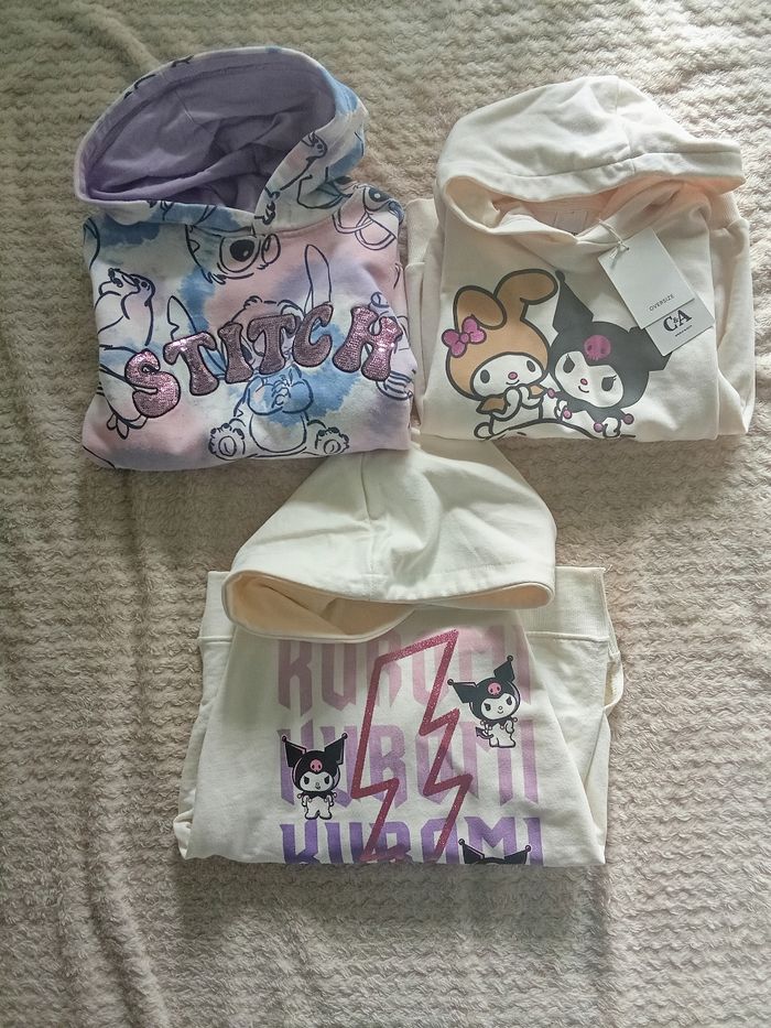 Lot de 3 sweats à capuche fille Taille 8ans 1 da Disney Et 2 C&A hello Kitty 1 avec étiquette Et les autres utiles que 1 fois